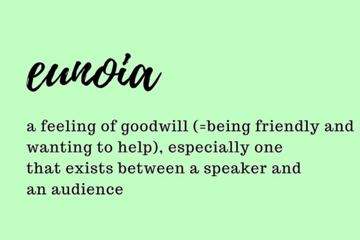 Example sentence: “His compassion and eunoia made him a fantastic candidate”.